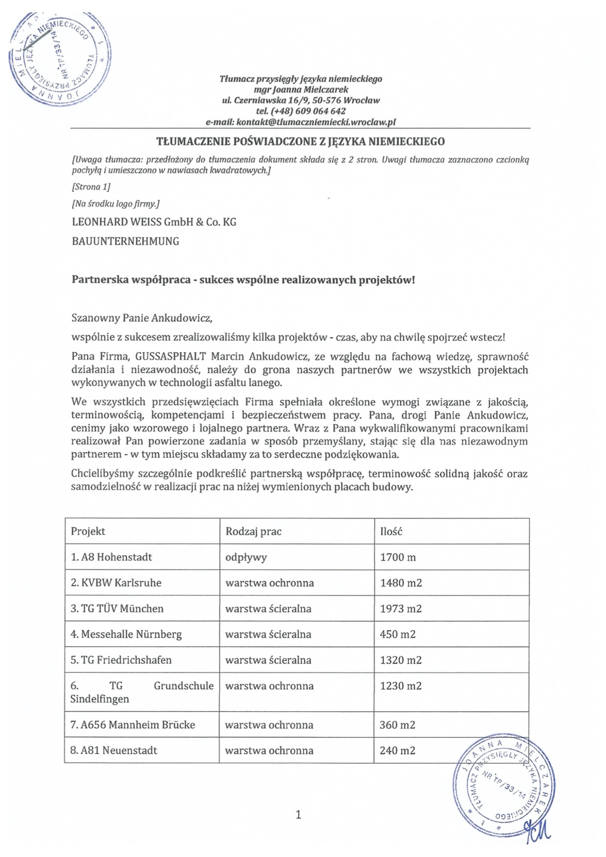 Firma GUSSASPHALT Sp. z o.o. Sp. k. została założona w oparciu o wieloletnie doświadczenie w branży budowlanej. Fachowość, praktyka i wiedza w zakresie układania asfaltu lanego nabyte podczas prac przy nadzorach technicznych nad wykonawstwem nawierzchni z asfaltów lanych zaowocowało licznymi realizacjami zleceń na terenie Polski i Niemiec.